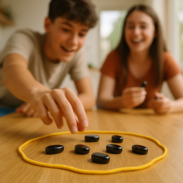 Each player, with 10 magnets, takes turns placing magnets in the battle circle without letting the magnets connect to get rid of the magnets,